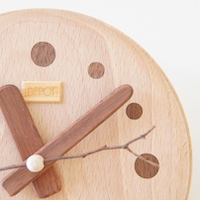 ムーブメント以外すべてが天然木。 長針や短針など小さなパーツまで、一つひとつ手作りし、 仕上げが美しいのも特徴です。 また文字盤は丸く削った15mmの天然木を一つひとつ埋め込んでいます。 振り子で揺れる「うさぎ」のカップルの小さなパーツまで手づくりしているんですよ。