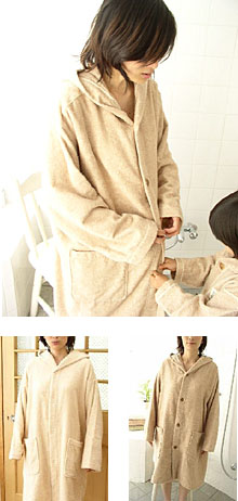 柔らかな肌ざわりで着心地のよさが人気のバスローブ。お風呂上りにそのまま羽織って部屋着感覚で使えます。海辺などで使っても便利。親子やご夫婦でご一緒にどうぞ。ボタンにはココナッツの実を使用しています。