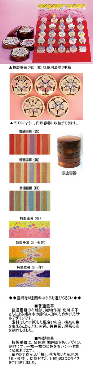- 材質:本体 セン 24mm厚、普通垂幕&特製垂幕 麻、もうせん 木綿