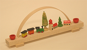 小さなキャンドルスタンド風ミニチュア。汽車と教会がかわいく並んでいます。